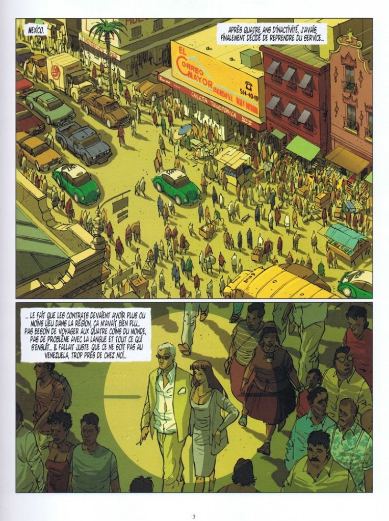 La vie était un long fleuve tranquille. Un jour le tueur se demande s’il a encore son savoir-faire. Il prend un contrat via son pote Mariano. Seulement quand il doit tuer une bonne soeur, il s’interroge. Non pour son métier. Mais cela fait étrange car elle ne semble pas avoir des activités criminelles. Alors le grand patron en sait peut être plus sur ce qui se trame. Lui non plus, il n’en sait rien. Il butte sur qui se cache derrière ça car il est probable que cela lui retombe dessus. Un élément en ressort et cela concerne le pétrole. Un fil rouge que l’on a déjà vu dans des séries de type Largo Winch. Espérons que Matz ne va pas tomber dans la facilité de cette thématique. Il pose les grandes bases.