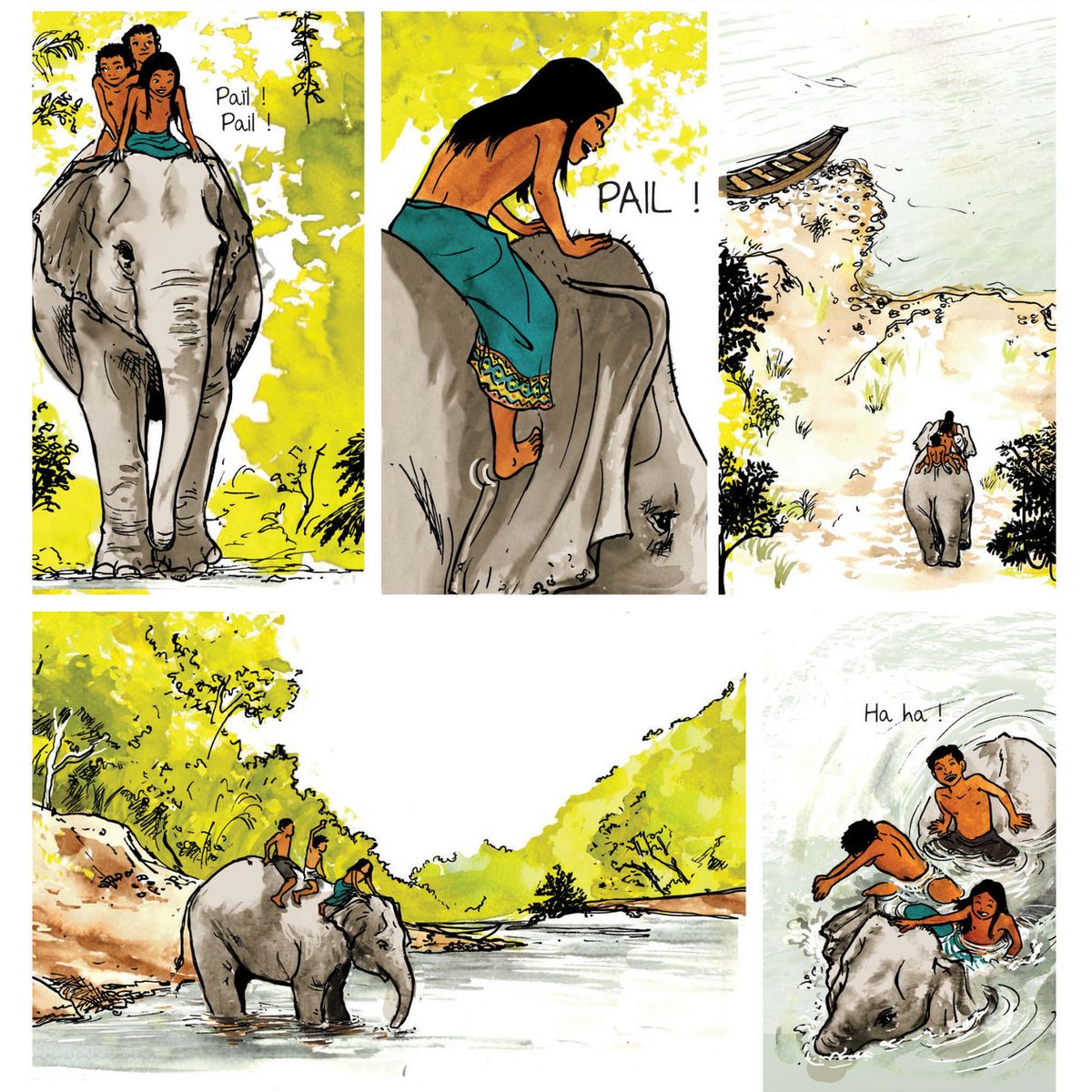 Jean-Luc Cornette et Vanyda décident de proposer un raconter à travers un récit choral sur plus de 70 ans l’Histoire du Laos. Un défi au combien audacieux surtout quand on sait à quel point le pays a été soumis à des enjeux géopolitiques. Le Laos a été désigné sous le nom de LanXang Hom Khao ou Royaume du million d’éléphants et du parasol blanc. Cela permet de mieux comprendre le titre qui a été choisi. Même si le mot Indochine n’est pas écrit on sait que le Laos faisait parti de ce pays. Les choses se compliquent avec la présence des américains. Quand des frontières se dessinent, de nouvelles dynamiques se posent avec des dictateurs, des massacres, de la corruption… L’aspect politique n’est jamais expliqué, c’est dommage car si on ne connaît pas un peu l’Histoire, on passe à côté de certains éléments. On sent la complexité des situations à travers ces récits de vie si difficile qui ont connu la violence, la pauvreté et la mort. Et aussi la perpétuelle réécriture du passé d’un pays assez récent. Les dictateurs effacent la mémoire jusqu’à faire oublier les tortures dans les camps de rééducation. Les années défilent assez vite, les personnages évoluent et on n’a pas le temps de s’attacher à eux. On comprend les obstacles qui se succédaient sans cesse sans jamais s’arrêter. C’est compliqué de faire sens ensemble quand tant de haine reste dans les récits de famille. Vanyda livre quelque chose de personnel en proposant des dessins assez doux, agréable et avec des couleurs chaleureuses.