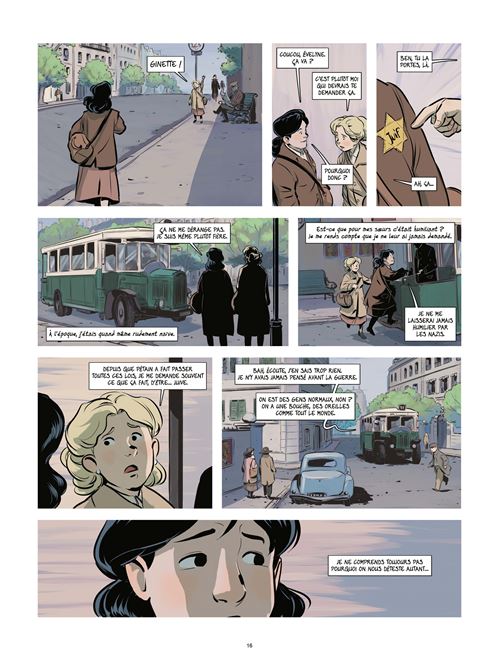 JDMorvan s’est déjà confronté à raconter des histoires de femmes courageuse notamment avec les séries « Madeleine, résistante » et « Simone ». Là, son travail est accompagné du regard du journaliste, Victor Matet. Efa, Cesc et Roger propose un magnifique univers graphique remplit de douceur en mettant une belle dose de pudeur dans les scènes d’horreur. Cela suffit amplement à imaginer l’horreur et comprendre les atrocités qu’un humain est capable de faire au nom d’une idéologie. Certains risquent d’être déçu car ce n’est pas un album historique avec des chiffres, des dates, des tonnes de documents d’archives… Mais il faut voir cela sous la forme d’un témoignage d’une vieille dame qui a appris à croire dans la vie et dans l’Homme pour continuer à vivre après les horreurs. On découvre le courage que cela demande de vivre avec un numéro, riche d’un passé sombre et lié à la disparition de sa famille déporté. A lire aussi bien pour les adultes que les adolescents pour réfléchir à quelle monde et quelle société, ils veulent demain.