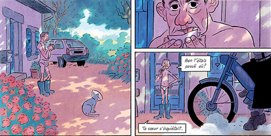La couverture est assez intrigante. Que nous raconte cet homme en surpoids sur un tracteur rose où il est inscrit : « Juste Célib ». A l’arrière, on voit un chat avec un collier de protection. Le tracteur traîne des casseroles comme pour fêter un mariage. Une histoire d’amour se trame derrière ce récit. Mais Didier est la cinquième roue du tracteur. Une fois que l’on se lance, on découvre le vrai visage de Didier. Le gars vit avec sa soeur dans sa ferme. Heureusement qu’elle est là car lui aime surtout glander et boire. Sans oublier de s’occuper de ces poires en bouteille. Un jour, il va à une vente aux enchères de la ferme d’un collègue, il n’achète rien à part récupérer le gars qu’il accueille chez lui. Une nouvelle dynamique à trois se déploie et une érection change la donne. L’amour s’immisce là où on l’attend pas et peu faire germer un bébé. Le tonton s’avère être là un être étonnant dans ce rôle. Un ensemble complexe qui dénonce aussi bien la détresse d’une fonction qui amène bien souvent à des suicides que la solitude. On évoque les concours de labour et autres fêtes pour créer du lien et rassembler. Comment rencontrer quelqu’un lorsqu’on est très investi dans son emploi et qui accepte de vivre reclue? Tous les personnages sont attachants et semblent vrais car ils dévoilent leur peur, leur doute et leur émerveillement. Le dessin de François Ravard avec ses teintes chaudes apportent beaucoup de chaleur et d’humanité. La luminosité est de mise malgré que nous sommes en Bretagne. Les nuages gris se sont vite dissipées pour laisser de place à un peu d’espoir. Léger et qui redonne le sourire, une proposition assez audacieuse qui change notre esprit le temps de la lecture.