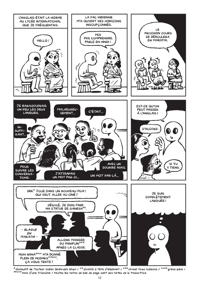 Arrivée en France en 2016 après plusieurs années d’études en Inde, l’autrice sud-coréenne évoque tour à tour dans ce recueil les écarts culturels auxquels elle fait face, les difficultés relationnelles rencontrées ainsi que les émotions qui la traversent. Ligne claire, trait plus épais, trames, le dessin de Silki mute avec virtuosité au gré des histoires, faisant apparaître des personnages tantôt humains tantôt animaliers, expressifs et bien souvent, hautement réconfortants. Les récits se succèdent pour former le tableau d’un passage à l’âge adulte sinueux et touchant.