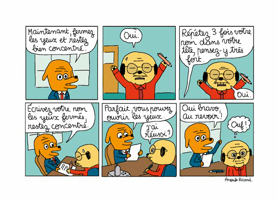 Après Coucous Bouzon, chronique loufoque de la vie de l’entreprise, Anouk Ricard s’attaque au meilleur de notre presse régionale ! Un patron fait signer une lettre de démission à un employé à son insu dans le Sud Ouest, une boulangerie attaquée au camion benne en Isère, une caméra trouvée dans les toilettes de la mairie de Gap, et bien d’autres encore. Au premier regard, les personnages de ces chroniques, essentiellement animaliers, sont mignons, drôles et colorés. En y regardant de plus près, les patrons sont tyranniques et roublards, les employés castagneurs ou voyeurs, les cambrioleurs complètement miros, les prêtres délirent après avoir avalé trop de champignons hallucinogènes. Avec son dessin d’une naïveté quasi enfantine, ses à-plats de couleurs, ses personnages aux mimiques stylisées, Anouk Ricard nous offre une vision décalée, cruelle et incroyablement drôle du monde moderne.