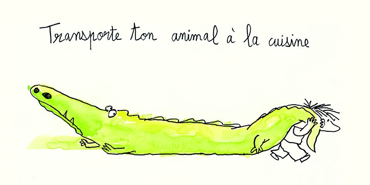 La surprise est total quand on commence à se plonger dans l’aventure. On s’attendait à une leçon de dessin. Il n’en sera rien. C’est bien autre chose qu’on nous propose. Car un animal apparaît sous nos yeux grâce à quelques coups de crayons. Un terrible animal prend possession du récit et n’en fait qu’à sa tête. On voit la puissance de la créativité pour emmener faire un voyage farfelue et rigolo. Le fait de jouer avec un trait de crayon et la couleur vert fluo, donne du peps au récit. Une lecture qui se partage avec des enfants dès 4 ans, où un moment d’humour décalé est précieux et construit des imaginaires. Même quand on est grand, on s’émerveille par la fausse simplicité de l’histoire qui nous redonne le sourire.