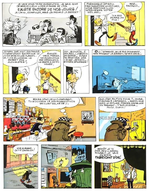 L’idée de trouver une recette pour faire de l’or en fait rêver plus d’un. Le comte de Champignac n’a pas pu tenir sa langue sur l’ouvrage qui la dévoile. Par conséquent, sa vie est en jeu.