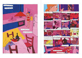 La couverture est très intrigante. Au premier regard, on perçoit une bouche et des lèvres bleus ce qui donne un aspect assez coquin. Puis plus attentivement, on voit qu’une femme met ses doigts dans sa bouche pour se faire vomis. Le titre Manger écrit en très gros caractère nous permet de faire le lien. On va tomber dans une histoire de trouble mentaux liés à la nourriture et à la pression sociale d’avoir un physique proche de l’objet de désir pour les hommes. Si on n’est pas mince, est-ce que l’on peut être une femme? Est-ce que l’on peut avoir sa place dans l’espace public? Est-ce que l’on peut avoir des amis? Bien que l’héroïne s’affame et subit des passages de boulimie, le bonheur et le bien-être ne sont jamais au rendez-vous. Elle est toujours dans une perpétuelle interrogation sur les calories, le gras, ce qu’elle peut manger ou pas, la perte de cheveux, la fragilité des dents… La souffrance est permanente et en continue. La famille est aussi un facteur qui a posé les bases de cette violence. Les soeurs ont fait une surprise à la petite dernière, elles ont gravé sur un arbre son surnom : Miss-ion Manger. Comment ne pas avoir de complexes par la suite? Eleonor Marchal le précise en préface, ce n’est pas un récit autobiographique bien que ces maux se rapproche cruellement des siens. La fiction se comprend très vite avec le fait que la mère soit un personnage proche d’une limace de Stars Wars et le père un cheval. Le dessin et la mise en couleur se rapproche de l’univers du comix. Tout cela génère une perpétuelle gêne, un franc inconfort dans la lecture. On apprécie les références culturelles parsemées partout comme le personnage de Daria avec sa copine. Par contre, est-ce que l’on conseillera la lecture? Sauf si on veut proposer un ouvrage alternatif qui bouscule les codes et la vision du monde qui veut de la norme qui conduit à du mal-être. On referme la bd ravie que cela se termine car le malaise à ses limites. L’idéal c’est que ça bouscule les certitudes de ce que l’on aime lire et nous incite à dépasser nos propres limites. Il ne faut pas oublier celles et ceux qui souffrent de TCA qui doivent se reconnaître et se sentir moins seule.
