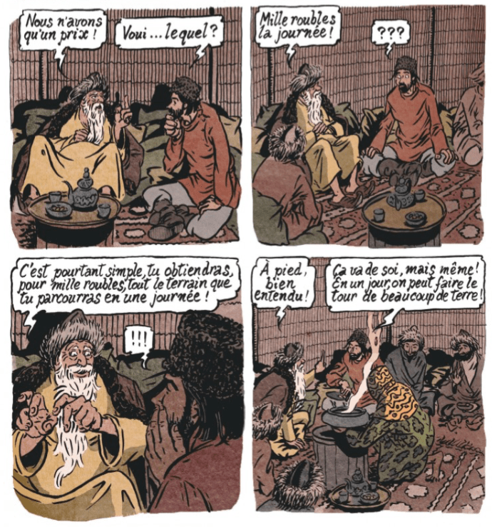 Ce qu’il faut de terre à l’homme est le nouvel album de Martin Veyron : une fable au thème universel et intemporel : la cupidité des hommes.