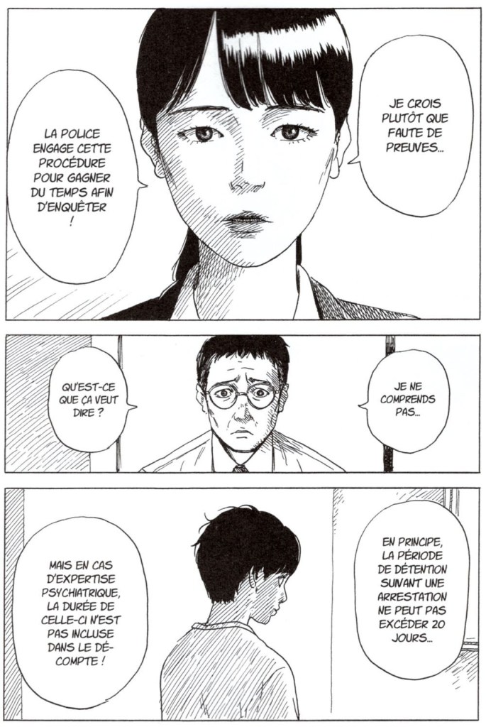 Shuzo Oshimi propose une immersion plus intense dans la psychologie de l’enfant. Seiichi est au coeur de l’action en justice concernant sa mère. Il vit dorénavant avec son père qui semble toujours à côté de la plaque. Comment faire face à la criminalité de sa femme? Il n’a jamais fait attention à sa particularité. Pour l’adolescent, quitter l’école s’impose. Les enfants restent assez cruels entre eux. Yukio par se rapproche car elle comprend son sentiment de solitude et de colère. Sa mère est partie lorsqu’elle était petite. Un amour fou et intense se développe entre eux et prévoit de rester toujours ensemble. Est-ce possible? Cet aspect rend le gamin plus touchant et plus humain. Mais progressivement les choses changent. Pour le mangaka, il semble important de créer une ambiance malsaine et malveillante. Au petit jour, il sort pour profiter de la neige qui tombe. Et voilà qu’il rencontre son cousin qui veut impérativement l’emmener là où sa mère l’a jeté dans le vide. Comment peut-il savoir ça? Face au handicap, il décide de l’accompagner. Des réminiscences se mélangent à des cauchemars éveillés. Il entend des vérités bien marquées qui le bouleverse et qui l’incite à réagir violemment. Autant au début, les regards étaient travaillés et insinuaient une part de folie et de manipulation. On passe à des plans sur des expressions de visage où la peur et le doute règnent. Jusqu’où cela va aller? Seeichi rêve t’il ou doit-il faire face à l’horreur de sa vie d’enfant? La suite nous en dira plus.
