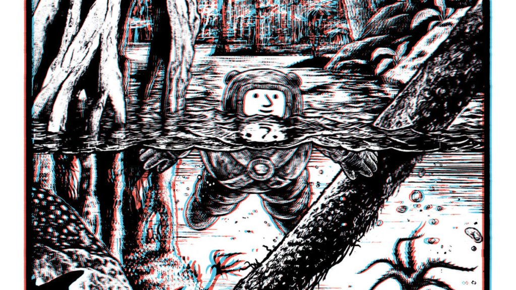 Se plonger dans des bd en noir et blanc avec des lunettes en 3D est une vraie aventure. Matthias Picard propose une nouvelle péripétie de son personnage centrale, Jim Curious. Pas besoin de texte ni de couleur. Les lunettes nous permettent d’entrer dans des paysages remplie de flore et de faune exubérante. C’est à la fois onirique et inquiétant. On a envie de prendre le temps de regarder et d’admirer le travail réalisé. Notre curiosité et notre âme d’enfant sont titillés. Souvent ces ouvrages se trouvent dans le rayon jeunesse. Comme si ce genre de lecture se limitait aussi à un certain âge. Alors, il en faut pas hésiter à franchir les frontières pour avoir le droit d’admirer le travail d’un artiste. Attention, après on a envie d’en retrouver d’autres et de poursuivre. Sans oublier de le montrer à celles et ceux qui ne connaissent pas les bd 3D.
