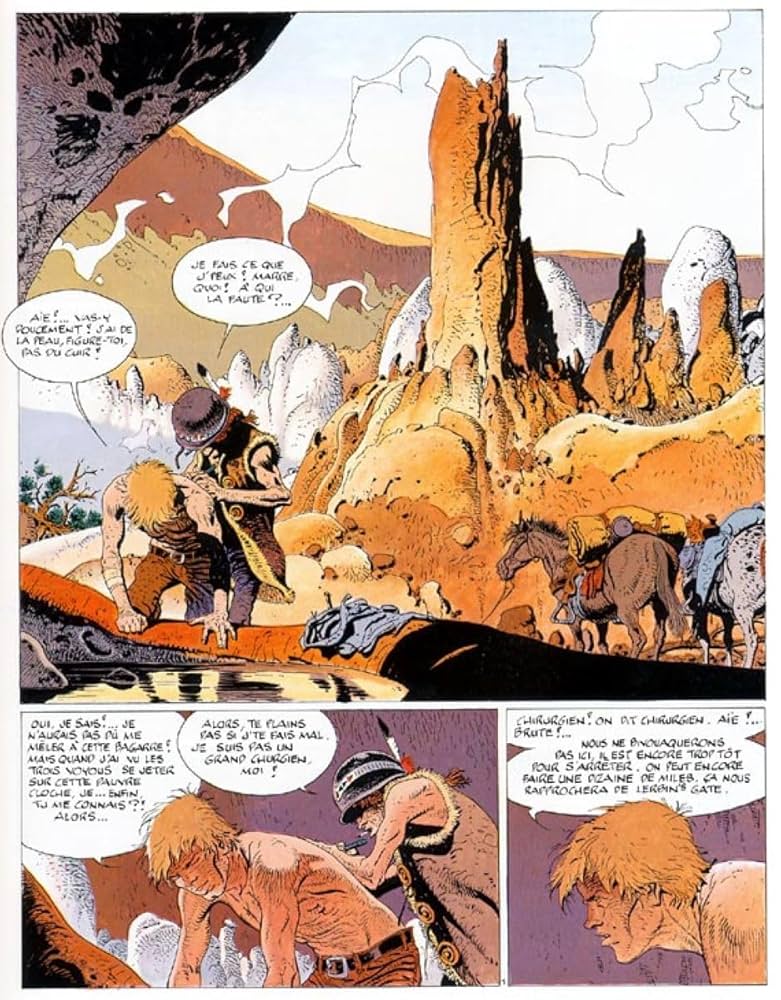 Ce quatrième opus de la série Jeremiah nous plonge dans une aventure où l’action et la réflexion se mêlent habilement. On suit Jeremiah et son compagnon Kurdy alors qu’ils tentent de retrouver les rescapés de son village natal, ils tombes sur la tante Martha, désormais prisonnière d’un camp de travail. Leur quête les confronte à des adversaires redoutables, dont un magicien énigmatique et une créature aux pouvoirs mystérieux, introduisant pour la première fois des éléments surnaturels dans la série. Hermann excelle à dépeindre un univers post-apocalyptique où la loi du plus fort règne, tout en explorant les nuances de l’âme humaine. Son trait réaliste et expressif, associé à une mise en couleur maîtrisée, renforce l’immersion dans ce monde brutal et sans concession. Des objets soulignent aussi cette période avec des machines roulantes mi-agricoles et mi de courses pour traverser des paysages rudes. Les personnages, complexes et attachants, évoluent dans une narration fluide qui maintient une tension constante. Ce tome se distingue par sa capacité à allier une intrigue captivante à une critique sociale subtile, offrant ainsi une lecture à la fois divertissante et profonde. Bien entendu, on reste sur sa fin car le récit se construit sur deux tomes. Comment les deux héros vont sauver des êtres exploités dans un centre de rétention? Nous allons bientôt le découvrir.