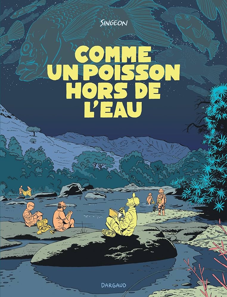 Il est rare de trouver des bandes dessinées qui parlent d’une démarche de préservation d’un poisson. Des experts ont décidé de faire une mise en récit d’une expédition à Madagascar. Singeon part à leurs côtés et il prend plaisir d’être là. La fine équipe embarque en novembre 2022 pour trouver un poisson d’eau douce, le Joba Mena. A t’il vraiment disparu? Il se trouve que non et il faut permettre à ce dernier de se développer. Par chance, il trouve quelques passionnés qui vont les aider. En cours de route, on découvre un pays très complexe avec des enjeux différents selon les endroits. Les routes de mauvaises qualités sont signes d’un grand bouleversement global. La pauvreté règne partout et tout est bon pour survivre. Donc comment vouloir sensibiliser les populations à la préservation des poissons, de l’eau et autre quand eux des problématiques à court terme? Indéniablement, protéger leur environnement leur permettra d’avoir des compensations positives dans le temps. Une démarche va débuter avec des enfants pour leur espérer un avenir plus prometteur. Le bédéaste admire les paysages et s’en donne à coeur joie dans sa publication. On sent la complicité avec ces collègues les scientifiques qui font de la vulgarisation. Ce qui est intéressant repose sur l’implication des politiques locales. Il faut flatter les pouvoirs politiques en place pour qu’aussi ils acceptent la démarche et voir qu’ils donnent un micro coup de main. L’argent est important. Les scientifiques ont aussi peu de moyen pour la mission donc le système D est obligatoire avec des chaussettes, de la colle en tube et d’autres trucs et astuces. On n’a pas le temps de s’ennuyer et on apprend beaucoup de choses. Une démarche intéressante assez complète qui donne à voir ce qui reste assez confidentiel. Il raconte son séjour et ce qu’il voit. Par contre, il n’y a pas de démarche critique sur la politique scientifique et culturel aussi bien de la France que de Madagascar. Si vous cherchez quelque chose autre qu’un récit d’un voyage scientifique vous allez être déçue. Sinon, vous aurez une vision de c’est le boulot des gens qui bossent par exemple à l’aquarium tropical de Paris.