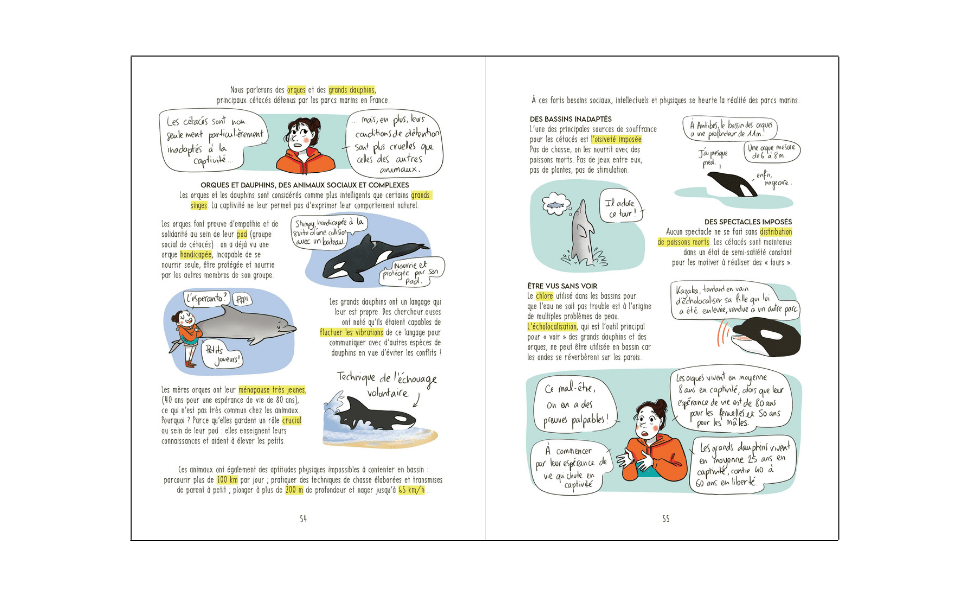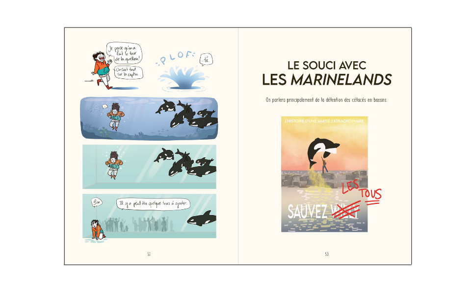 Elle explique, elle source et elle propose aussi des solutions. On n’est pas obligé de tout lire d’un coup car beaucoup de données et aussi cela incite à une prise de conscience. C’est dommage que les sources chiffrées se trouvent uniquement à la fin de la bd. Et on aurait aimé aussi trouvé à la fin plus de sites, d’associations et autres pour la protection des animaux que l’on trouve éparpillé dans l’ouvrage. La lecture ne laisse pas insensible à notre rapport aux animaux et leur omniprésence dans nos produits de consommation.