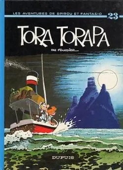 Se plonger dans un Spirou et Fantasio est toujours une aventure. On ne sait jamais si on va être totalement exaspéré ou content d’avoir passé un bon moment de divertissement. Dans ce tome, on suit une aventure encore totalement improbable qui commence sur les chapeaux de roue. On retrouve le duo de pote, Spip, le comte de Champignac, Itoh Kata et forcément Zorglub, qui est devenu tout gentil. Le triangle n’a pas disparu et il se fait enlever. Non parce qu’il est passé du côté obscur de la force, mais car il est très ingénieux. Pas très critique car il ne s’interroge en aucun cas sur l’objectif à atteindre. Quand il découvre le pot-aux-roses, il se met au service du bien. On n’a pas le temps de s’ennuyer même si le rire n’est jamais au rendez-vous. Il ne manque pas de rebondissements et de situations improbables, une fois encore. On part de Champignac et après on n’arrête pas de changer de pays en pays pour arriver à une petite île du pacifique, Tora Torapa. Ancienne base secrète de Zorglub où des éléments technologiques sont cachés et sont toujours fonctionnels. Les méchants qui géraient l’île vont changer de camp en un rien de temps et aide les autochtones. La chute avec la présence d’atomique pour créer des effets graves est de trop et tombe comme un cheveux sur la soupe. Les clichés sont de mises et l’esprit des années 70 règne en maître. Comme d’habitude, les femmes restent quasi inexistantes. On trouve juste Ororea, brune pétillante aux cheveux longs bruns relâchés. Elle porte une robe très courte, laissant son corps assez dénudé. Malgré qu’elle semble très chieuse, elle possède un vrai emploi, photographe. Elle menait l’enquête pour témoigner ailleurs. Toutefois, elle reste un objet sexuel qui est représenté comme telle aussi bien par sa tenue que par la réaction de Spirou. Un sexisme totalement assumé par Franquin et aussi Fournier, ce qui est bien dommage. Les bd qui valorisent le royaume de la couille souffrant en plus du syndrome du sauveur, ennui et appauvries considérablement le récit ainsi que l’intérêt du lecteur. Prendre la succession suite au talent de Franquin, ne veut pas dire qu’il n’est pas possible de donner un nouvel élan comme on le constate maintenant. On a vu pire. On ne s’est pas ennuyé mais on va l’oublier.