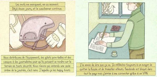 Nora Krug a fait sa place dans le monde du récit graphique. Elle a publié dans « The New York Times », « The Guardian » et « Le monde diplomatique ». Sa reconnaissance s’est faîte avec la médaille de la Société des illustrateurs et du New York Arts Directors Clubs. Elle a un style bien à elle qui rappelle l’art déco et aussi les premières publication du « The New Yorker ». Raconter un conflit actuel est un exercice difficile et complexe. Elle a décidé de ne pas prendre le partie d’exposer la violence, les armes et les cadavres. L’astuce est que les mots se suffisent à eux pour décrire l’horreur. Sur chaque double page, un jour avec de part et d’autre, le témoignage réel de deux personnages centraux. C’est présenté sous forme de calpin avec des lignes et une écriture au crayon à papier. L’écriture est la même et on la même quantité d’espace. Pas de mise en valeur de l’un par rapport à l’autre. Un statut égalitaire qui remet l’humain, les sentiments, l’éthique, les valeurs en avant. Bien que dans deux cas différents, la souffrance et le doute restent omniprésents. A cela, la bédéaste rajoute quelques dessins dans une petite case. La démarche se veut dans la continuité, très pudique et illustrant uniquement des choses simples telle un tube de dentifrice. C’est soft, très délicat, le juste milieu pour évoquer une actualité toujours vive, sensible et controversée. Une audace singulière qui saura trouver son public.