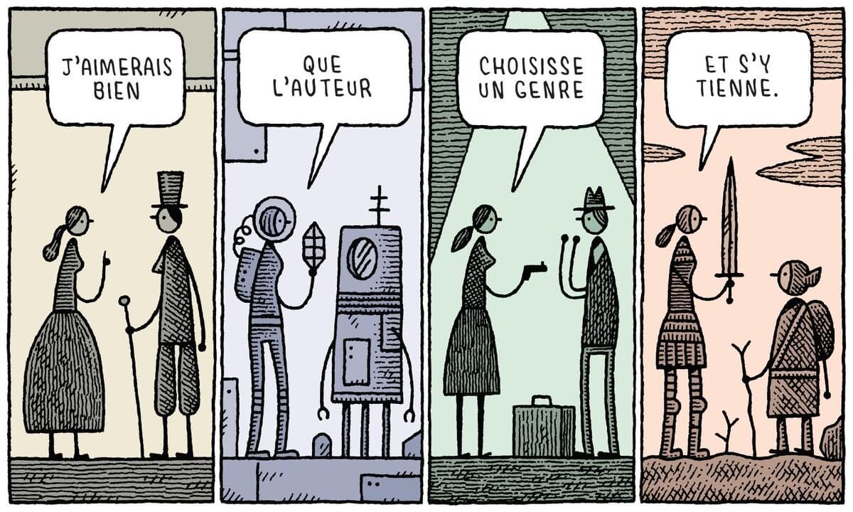 Tom Gauld dévoile les recettes pour réaliser un livre à succès. Il use avec dextérité de son savoir-faire avec l’humour, l’ironie et l’absurde. Une technique efficace pour voir le champ des possibles.